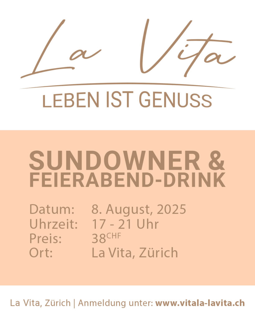Auf der Terrasse von La Vita genießen wir gemeinsam den Sonnenuntergang über Zürich – mit liebevoll zubereiteten Sundowner-Drinks, anregenden Gesprächen und einer Atmosphäre, die Leichtigkeit und Lebensfreude versprüht.
